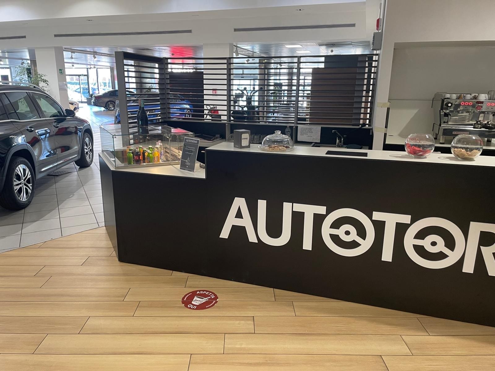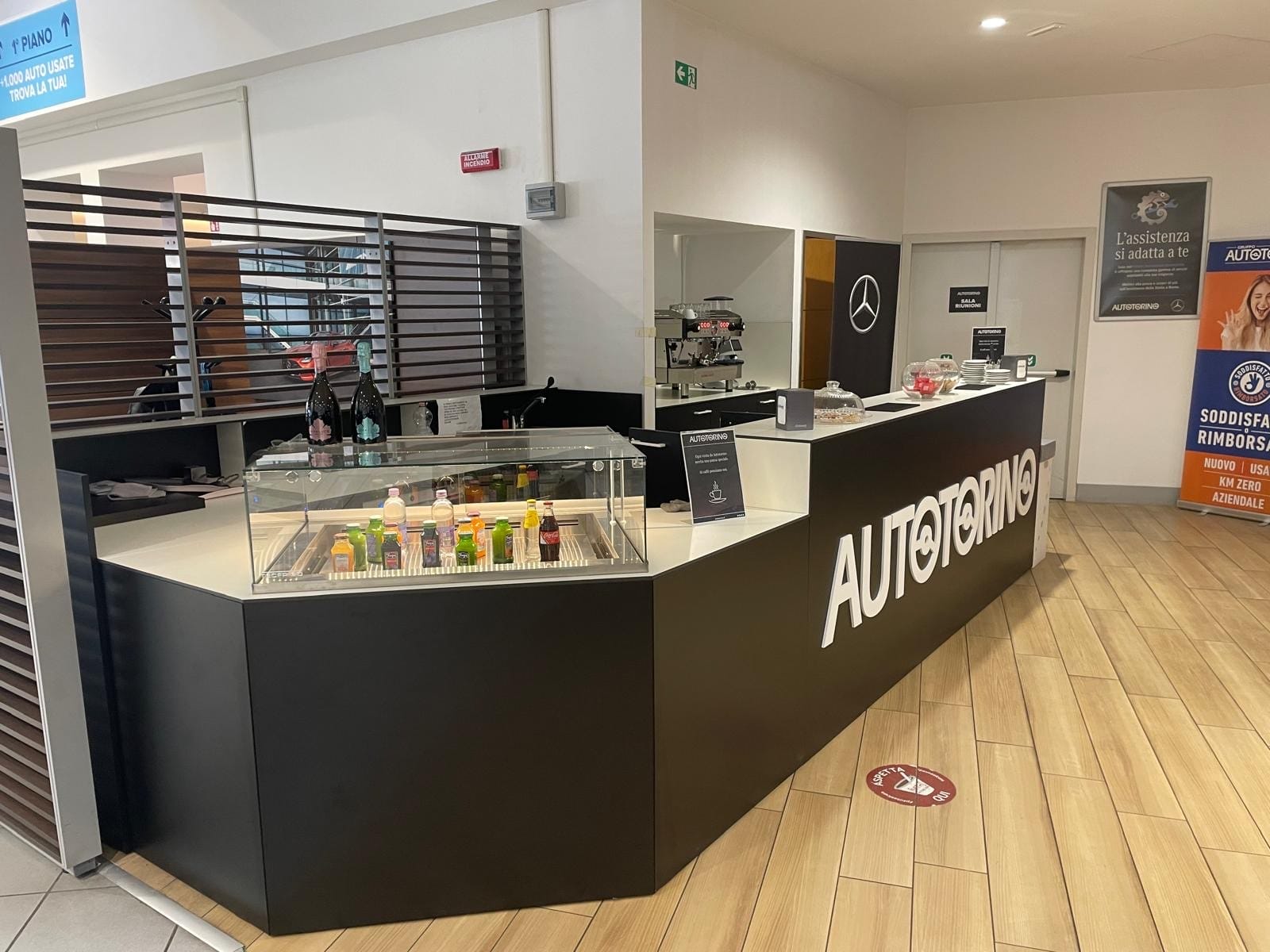 Autotorino ha scelto di dedicare uno spazio specifico all’accoglienza dei clienti, posizionando il bar in prossimità dell’area di consegna dei veicoli.