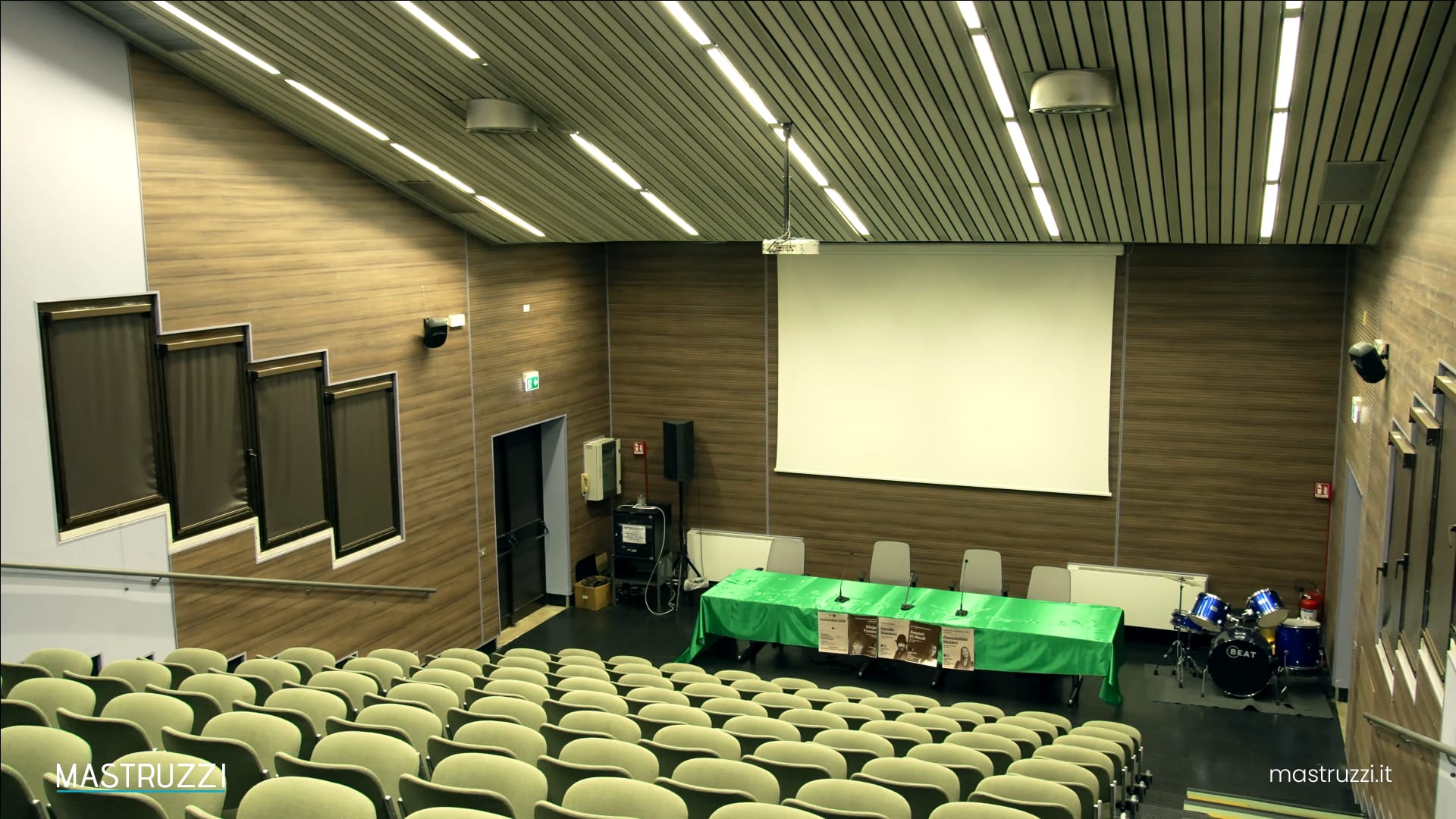 L’auditorium oggi è uno spazio che unisce comfort uditivo e benessere percettivo, capace di accogliere eventi pubblici, rappresentazioni teatrali e conferenze offrendo sempre un’eccellente intelligibilità del parlato e una diffusione sonora uniforme.